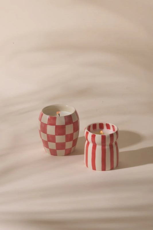 Cabana Red Striped Ceramic Candle Hibiscus Bag
