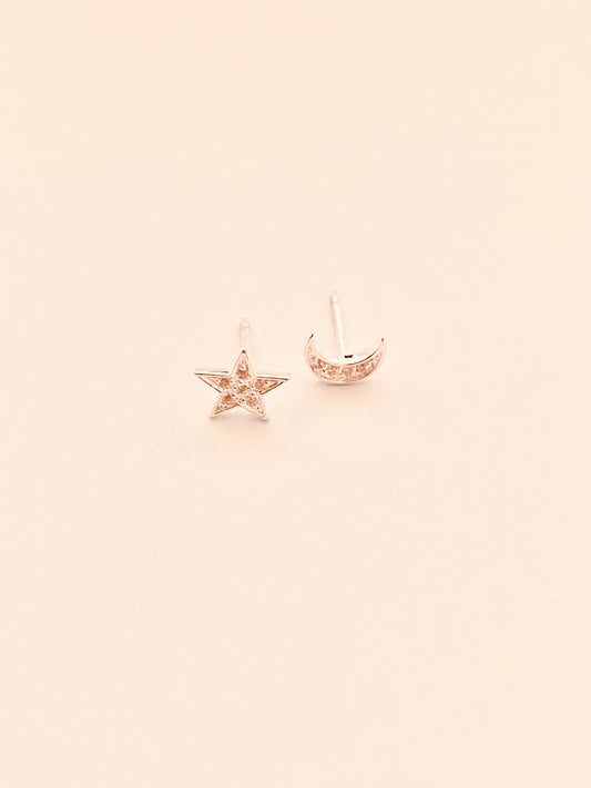 CZ Pave Moon and Star Stud Polished Sterling Silver Earrings