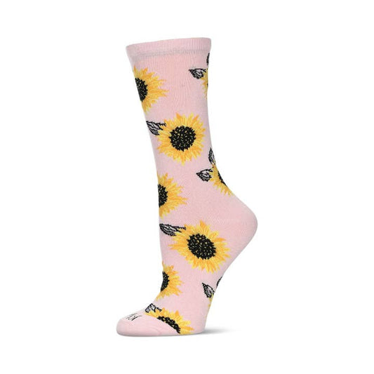 Women's Bamboo Crew Socks Powder Pink Sunflower