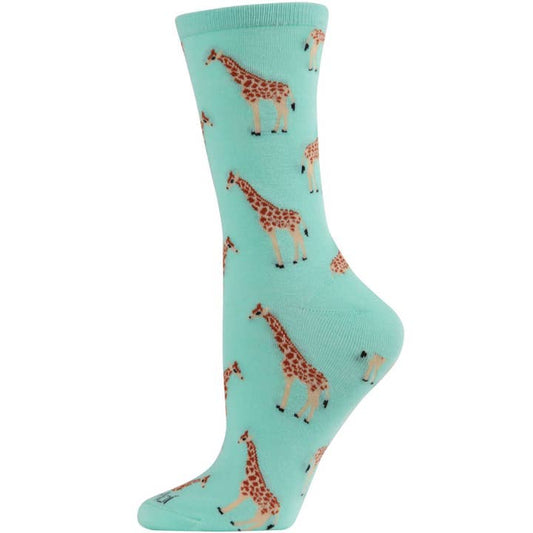 Women's Bamboo Crew Socks Seafoam Giraffes