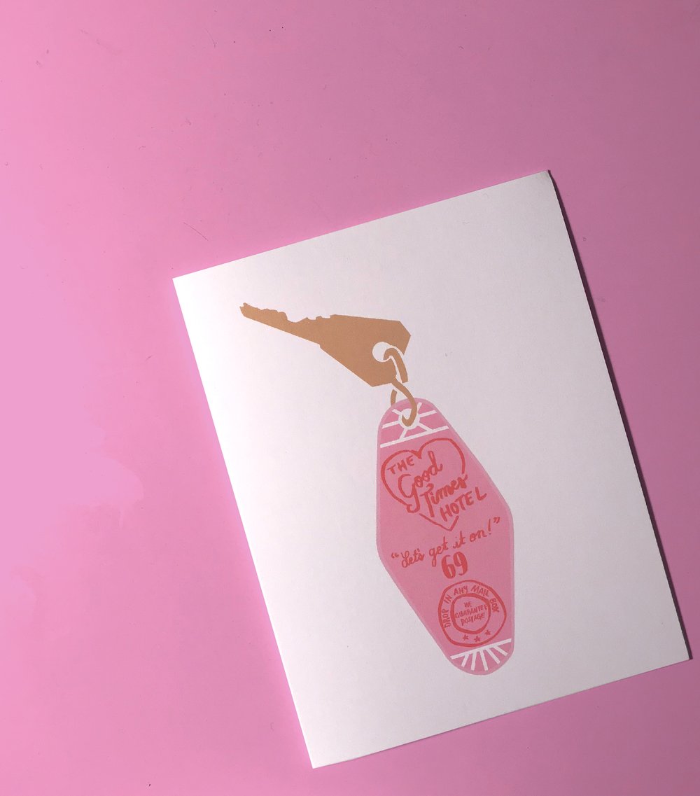 This throwback card to hotel keychains is the perfect way to tell your special one you're down to have a good time.