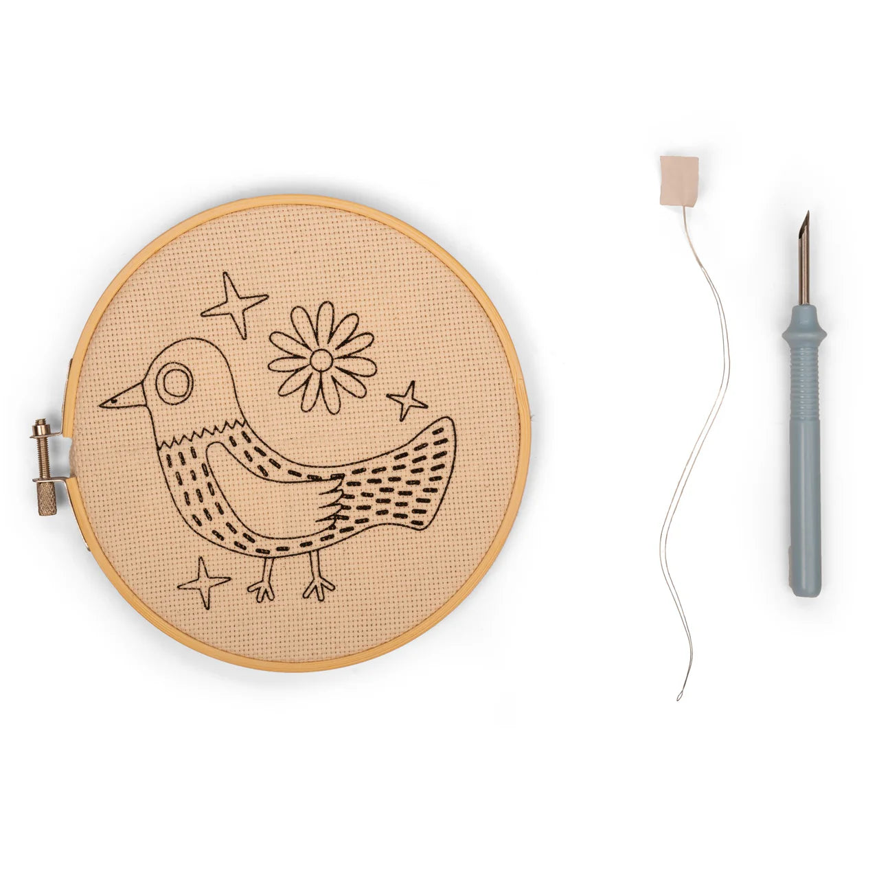 Create quirky decor with our Bird Punch Needle Kit! Includes bamboo hoop, punch needle, threader, template, and yarn. Easy for beginners.