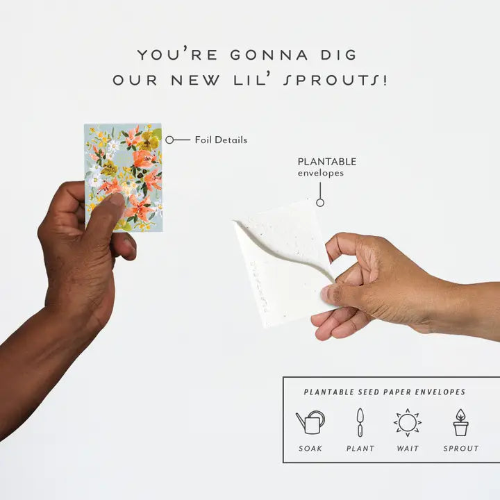 - Foil details and a PLANTABLE seed paper envelope which is embedded with wildflower seeds.