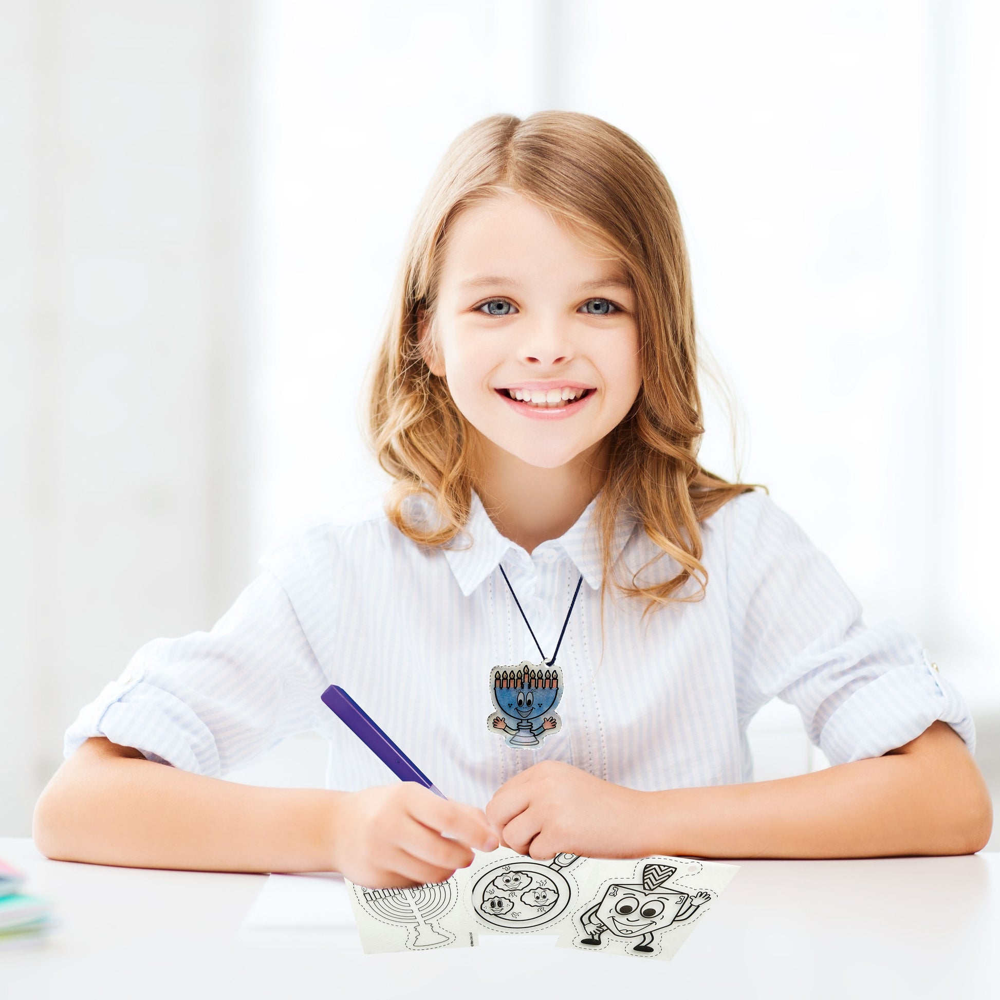 Unleash your creativity this holiday season with this Chanukah Shrink Art Kit! Use the markers to color in the festive designs, then watch as they shrink and harden in the oven. With the included rings and cords, you can create your own personalized keychains and necklaces. A unique and fun way to celebrate Chanukah!