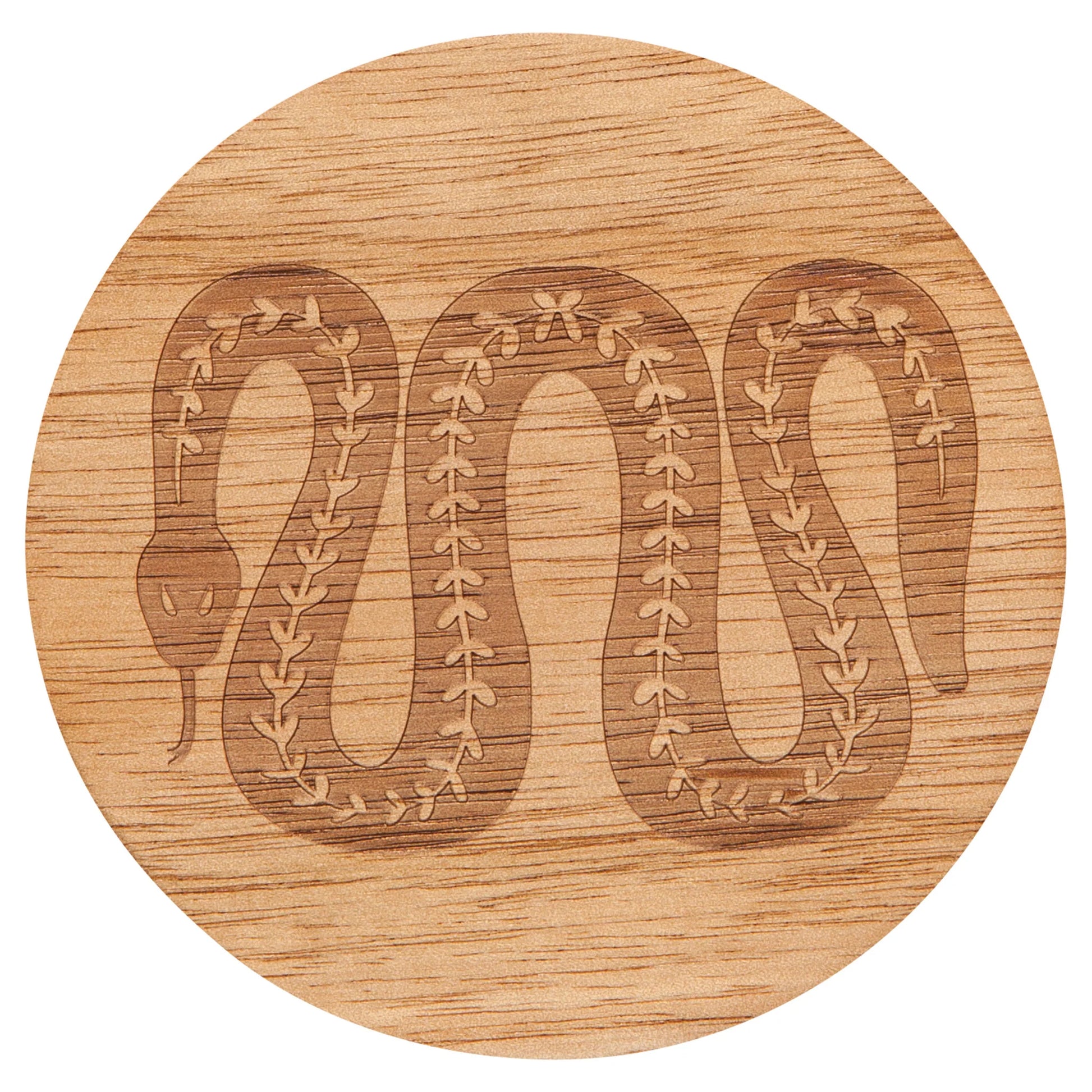 With natural acacia wood grain patterns, each coaster in these sets is truly unique. Danica Studio symbols are laser-engraved into the surface, creating a splendid medallion effect.