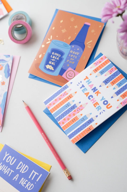 Sending you good luck for your university journey with this quirky card!