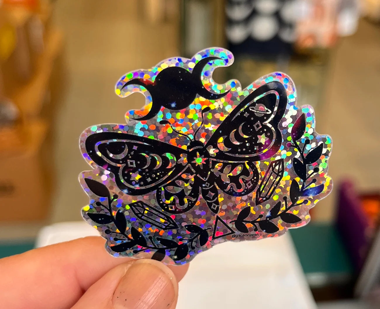 Nice glittery moth, got some crystals, got a moon. What else could you possibly want?