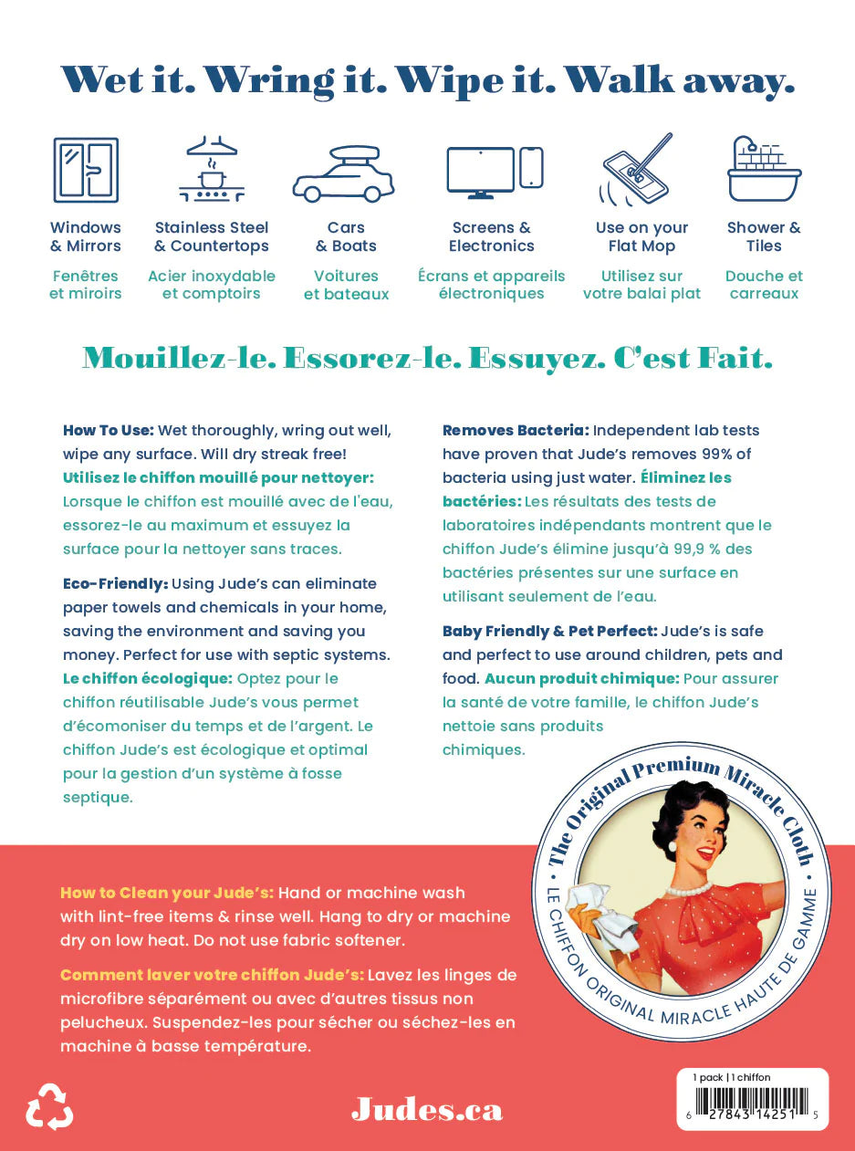 ✔︎ Jude's is tough! - Washable & reusable. If needed, use Jude's with even the harshest disinfectants. They won't hurt your Miracle Cloth.