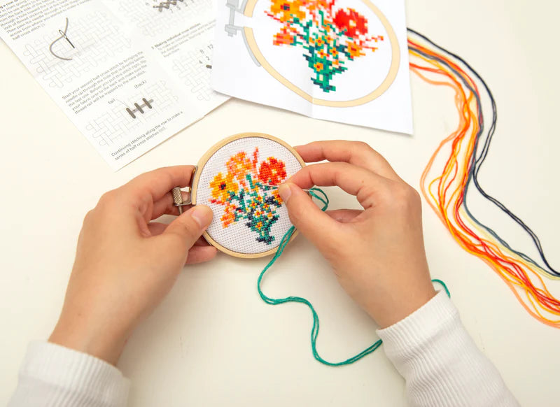 Relax at home or at work on mini-embroidery. Also, a great kit for beginners! Happy stitching!Includes: 7.6 cm bamboo hoop frame, 10.9 cm square canvas to stitch on, colour threads, and 1 needle. Plus, one pattern guide and helpful tips on getting started.