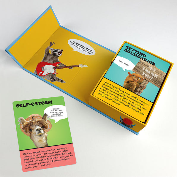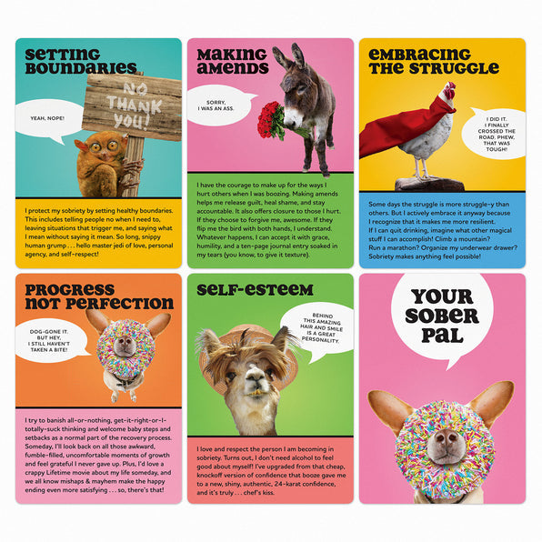 Want/need a sober pal who’s been there and totally gets it? With 50 funny + real-talkin’, motivational cards, this deck’s got your back! Whether you’re already in recovery, wanna go easy for a bit, or just kinda sober curious … Your Sober Pal is here to uplift and comfort you along the way.