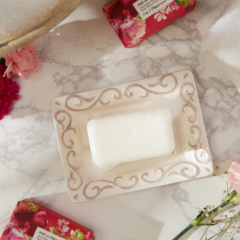 Le Jardin 150g Soap Iris + Peppercorn gently cleanses and hydrates with Shea Butter, leaving your skin soft and fresh. Enjoy a creamy, playful lather inspired by the scents of Provence.