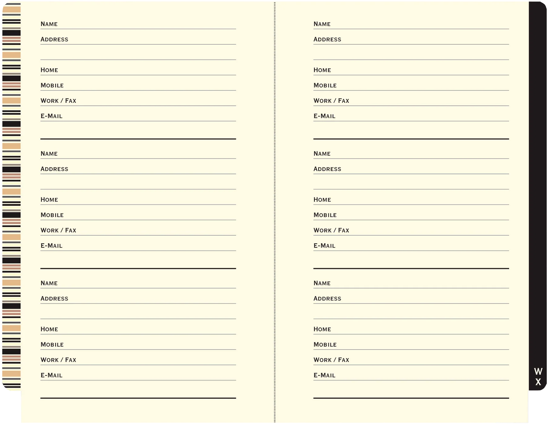 - Pocket-sized personal address book has space for more than 400 contacts.