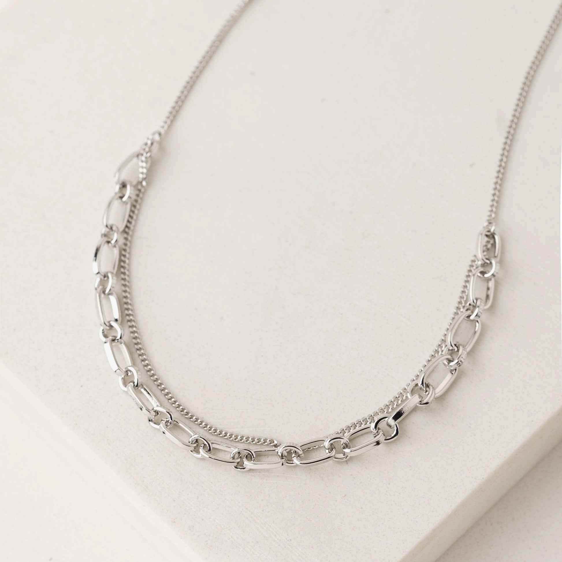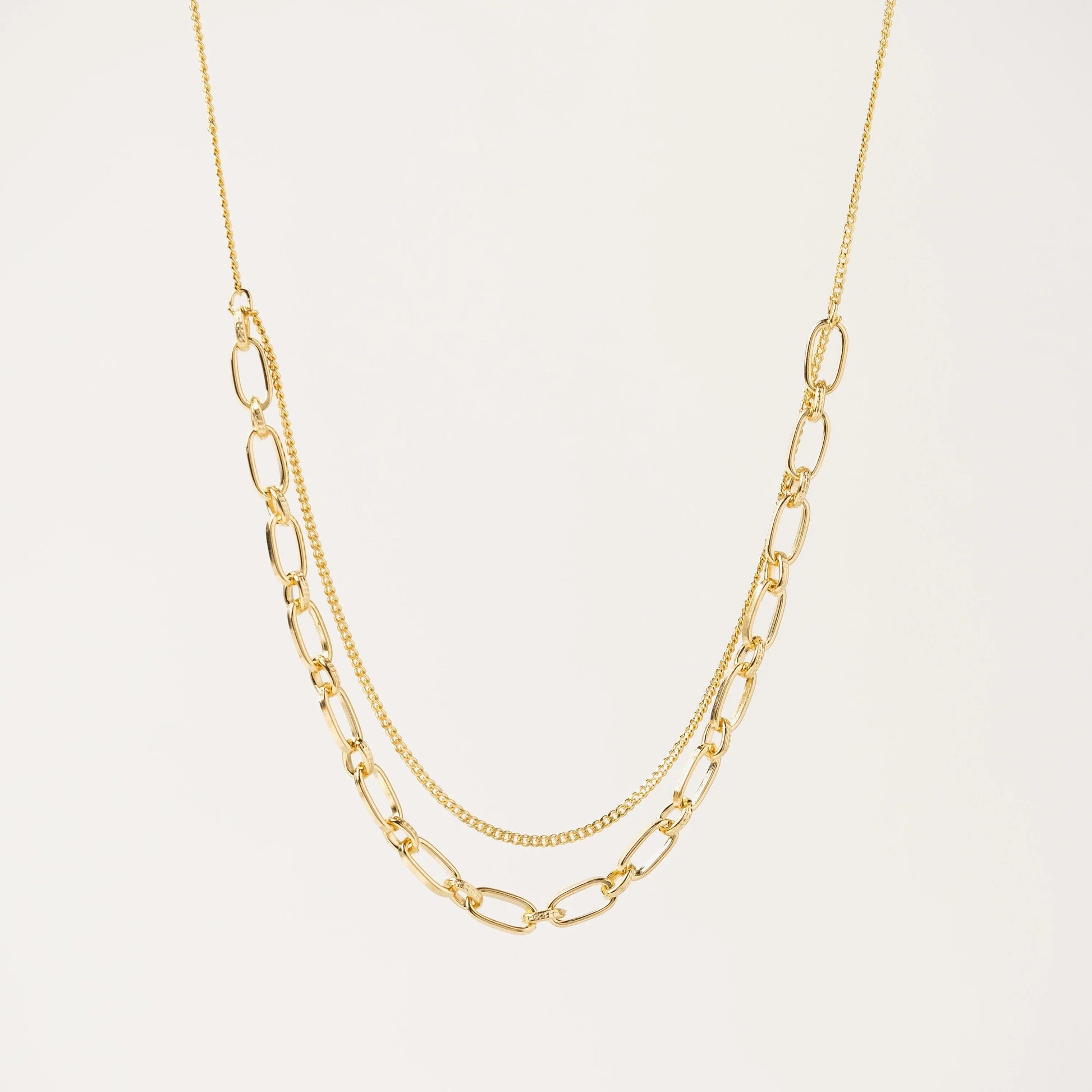 Add the cool complexity of a layered piece to your look with the Aya Necklace. This dual chained piece is plated with gold or silver to add a little something extra to your favourite outfit. The Aya is also available as a bracelet.