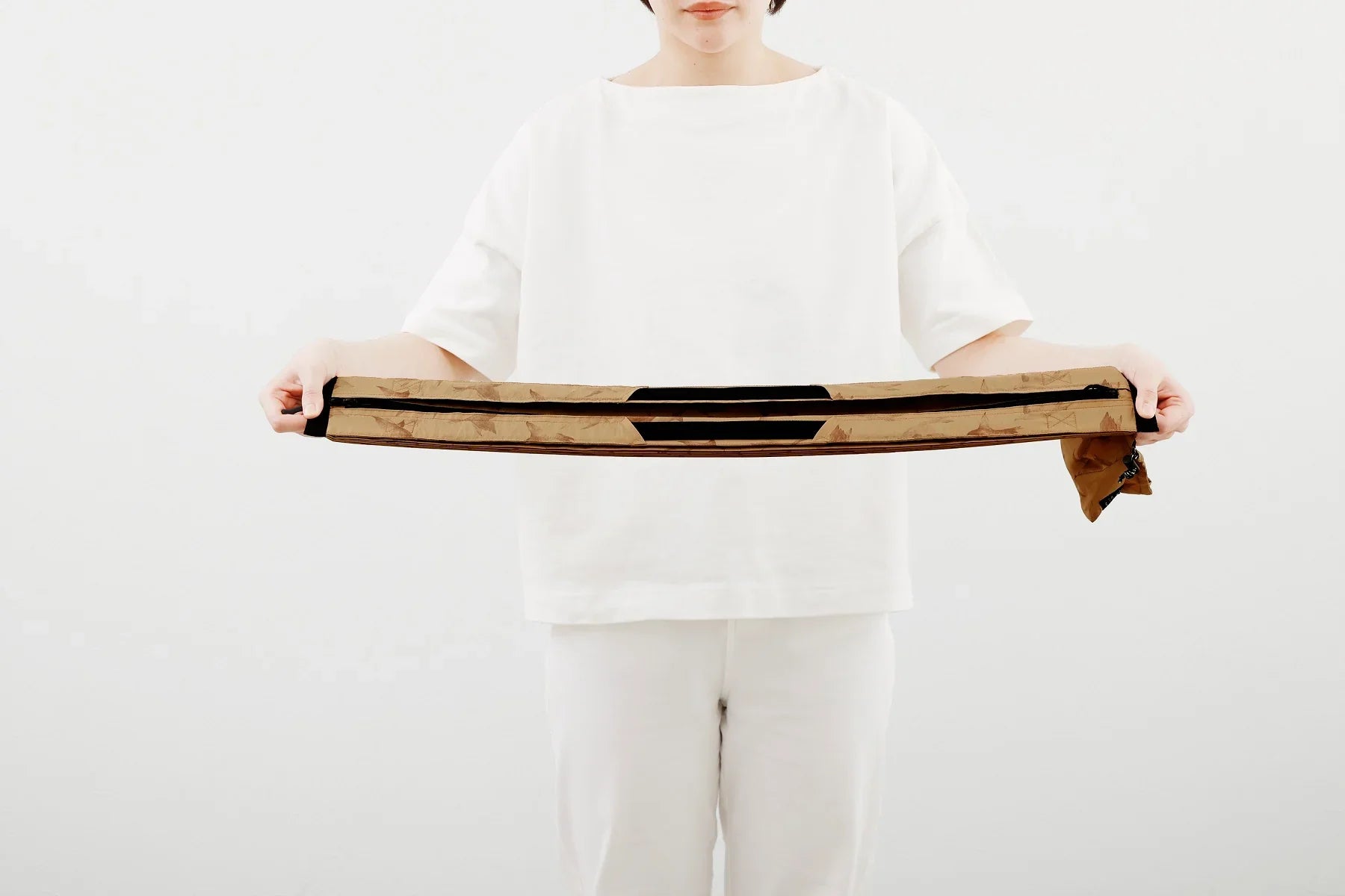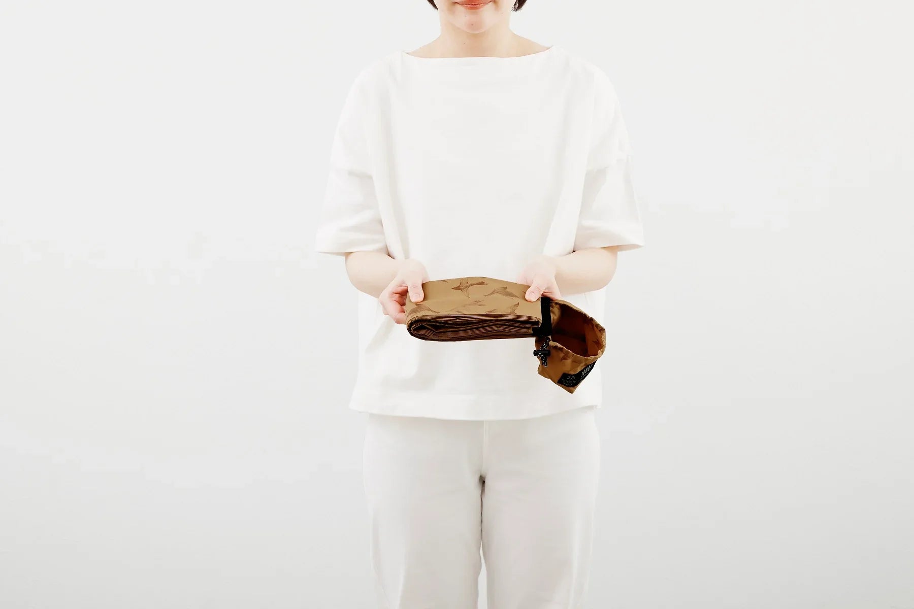 Designed like a traditional Japanese wrapping cloth, it opens wide and adapts to round, flat, or irregularly shaped items. -