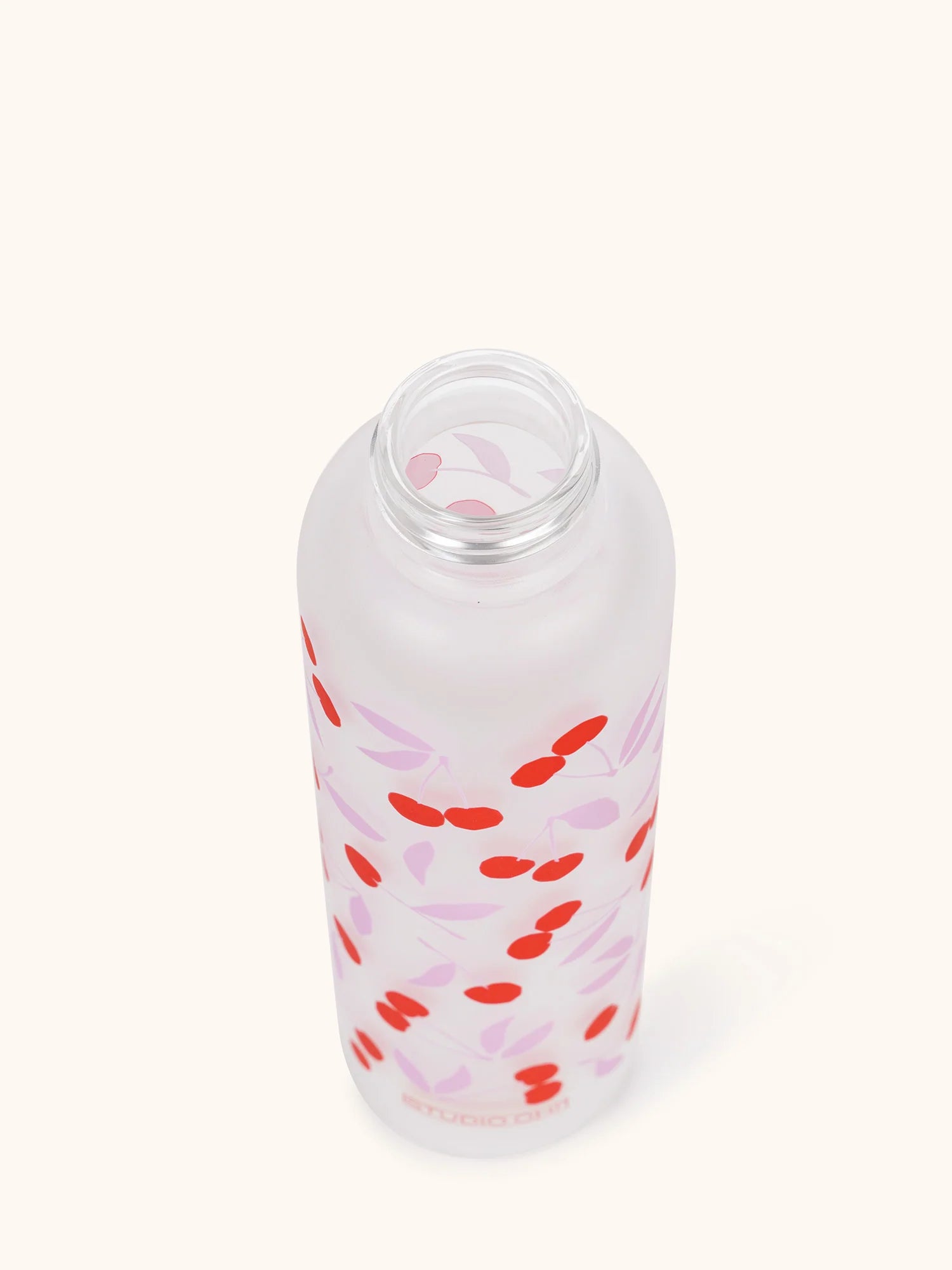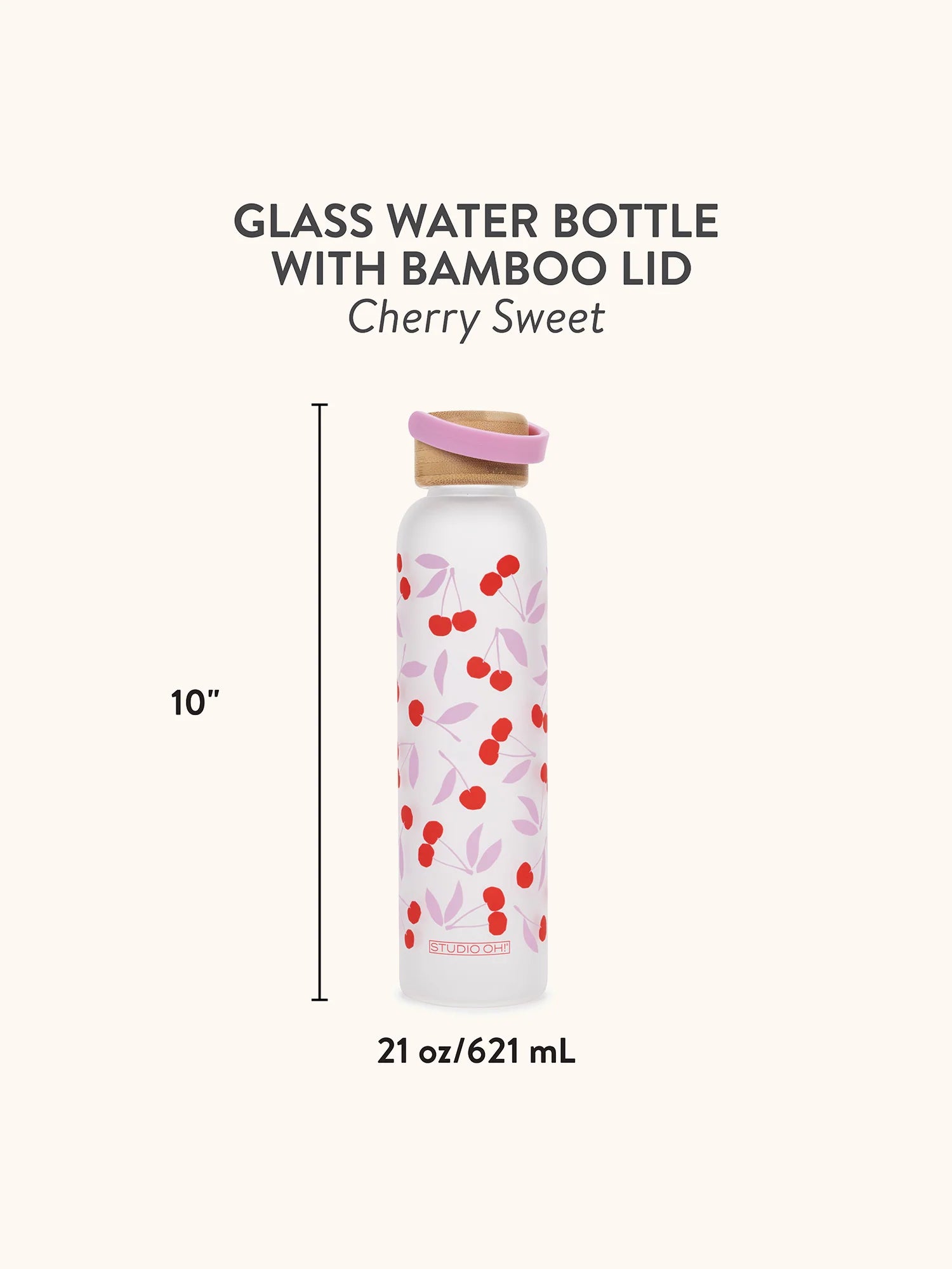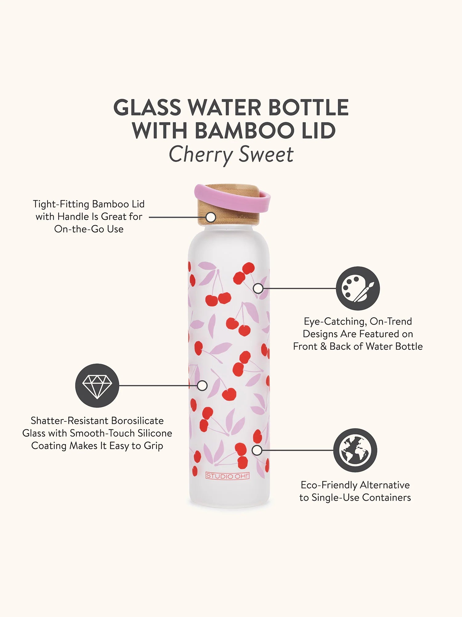 Cherry Sweet Glass Water Bottle with Bamboo Lid
