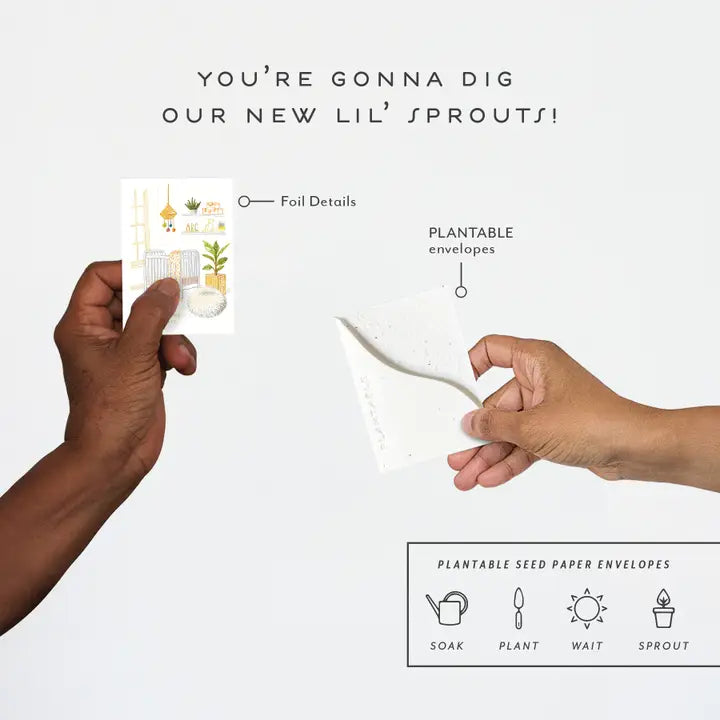 Welcome new arrivals with the Nursery Sprout Mini Greeting Card! Featuring a charming nursery-themed design and the sweet message "Welcome home sweet baby," this playful mini card is perfect for celebrating the joy of a new baby’s arrival.