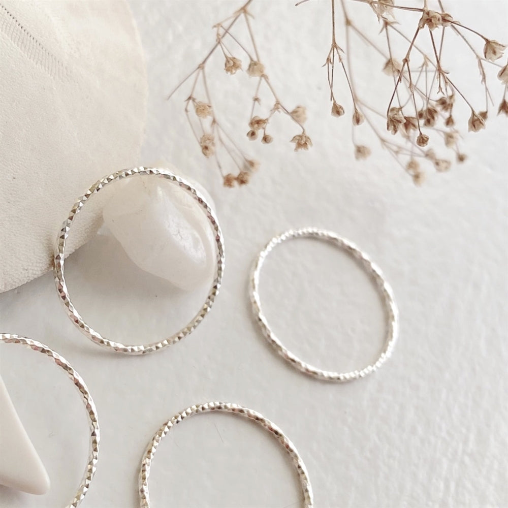 We love how the textured band of this dainty ring catches the light so perfectly. It adds a beautiful shimmer to a ring stack without having to add any height.