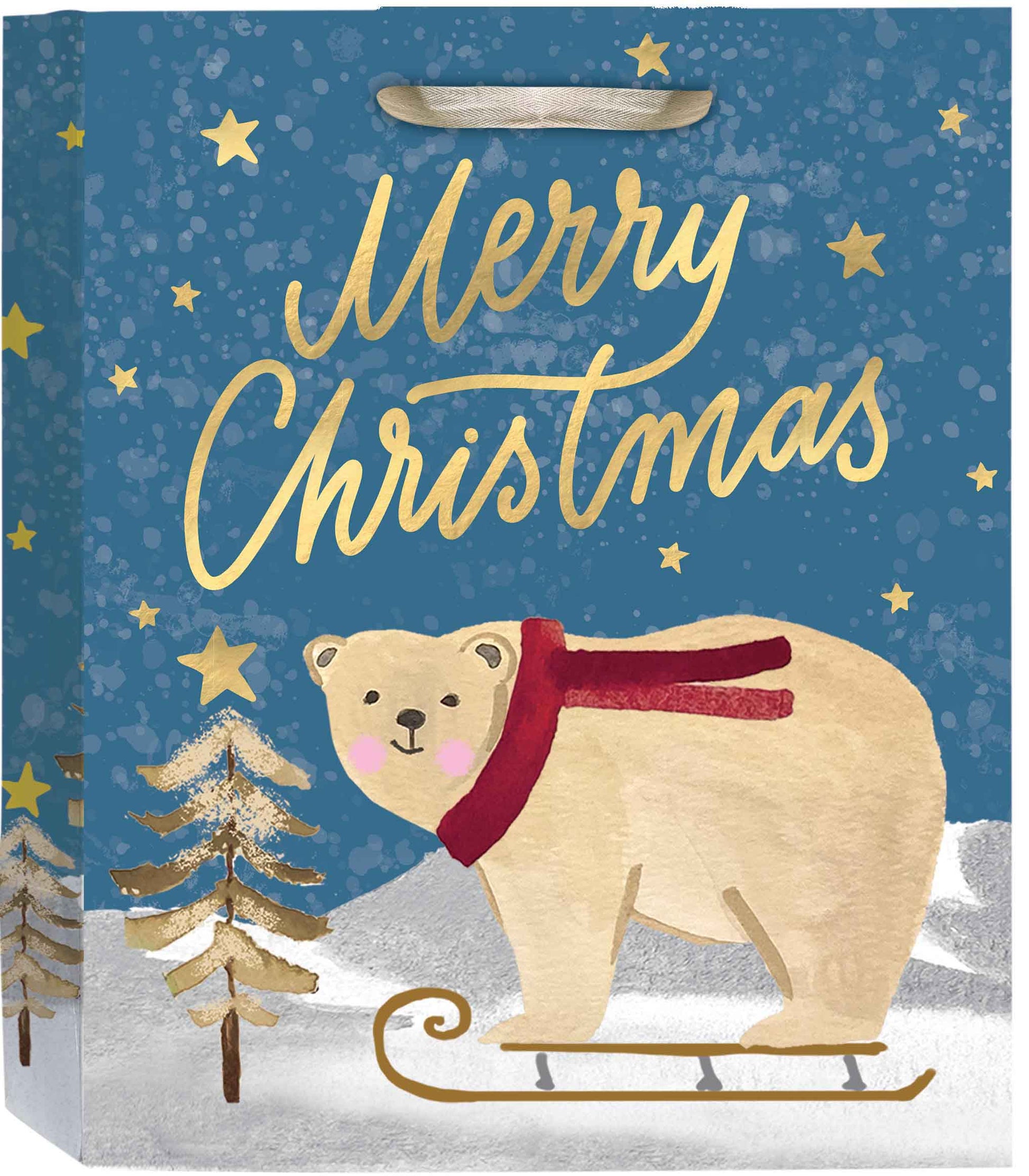 This medium gift bag shows playful polar bears having fun. It’s perfect for wrapping Christmas gifts with a joyful, snowy feel.