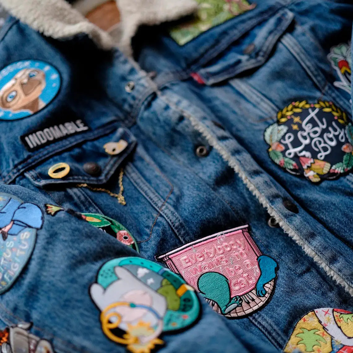 Embroidered iron on patch with merrowed edge.