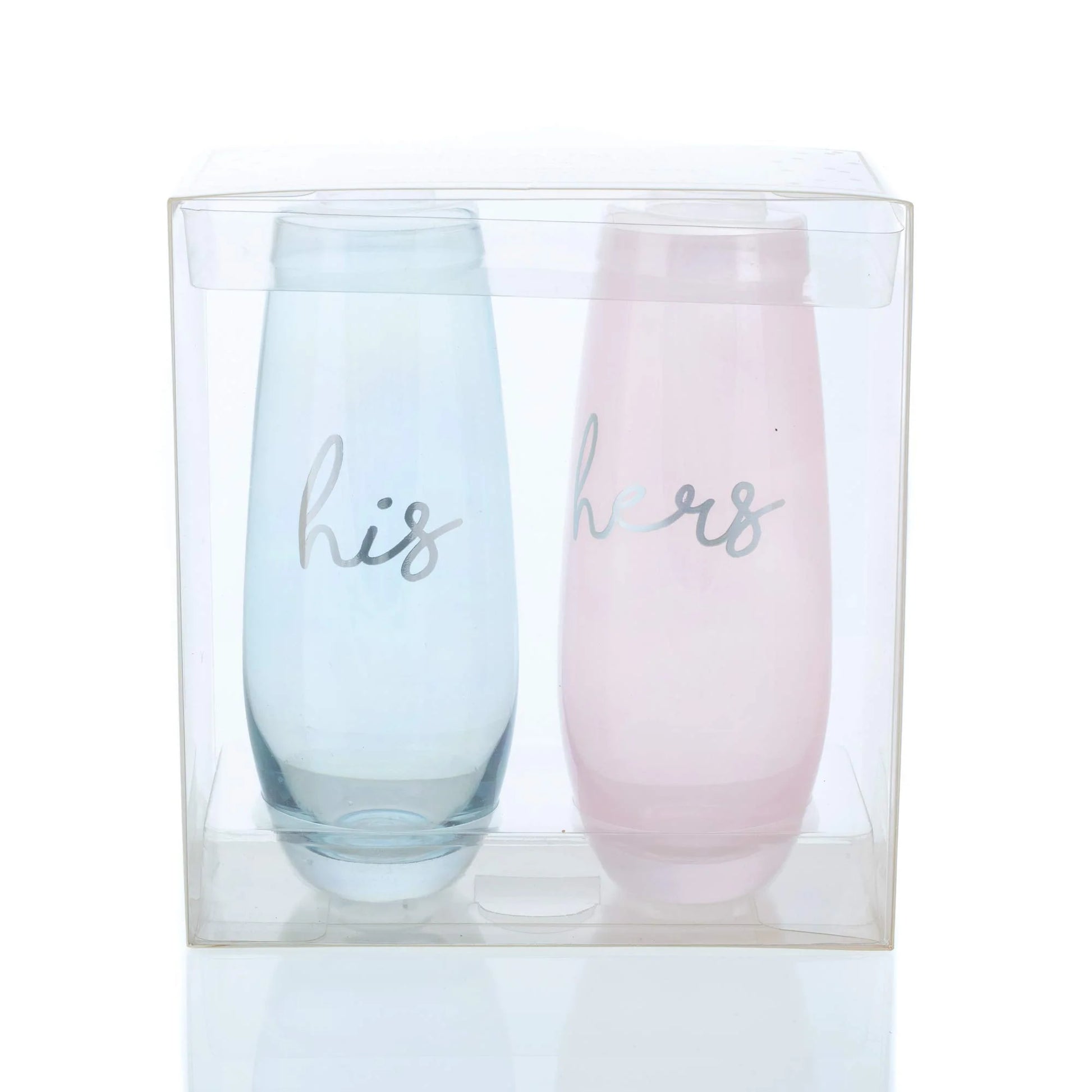 Pop open some bubbly with the 10oz Champagne Hers Pink His Blue Set! Enjoy your favorite drink in style with these color-coordinated glasses. Perfect for celebrating with your partner, or gifting to a fun-loving couple. Cheers to love and laughter!