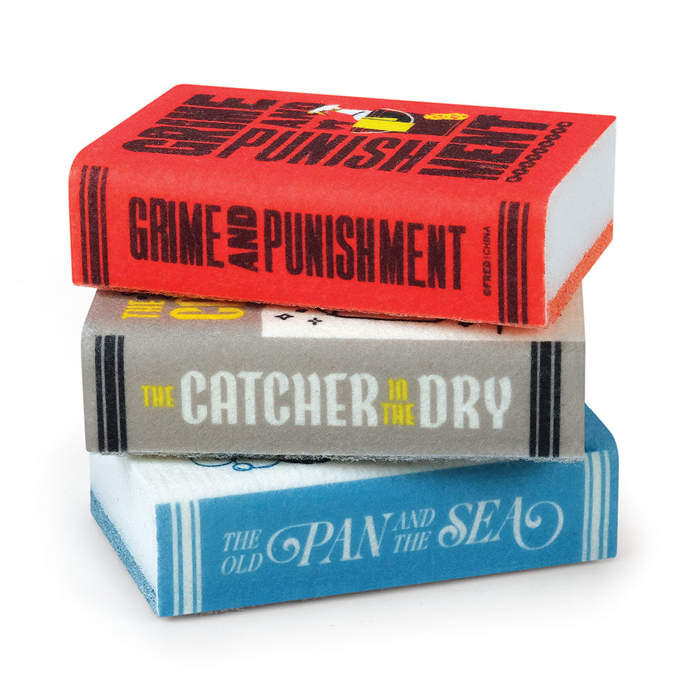 Turn a page on dirty dishes with Fred’s Neat & Novel sponges! Each cleverly designed sponge parodies a classic literary title—Crime and Punishment, Catcher in the Dry, and The Old Pan and the Sea—and features three hardworking layers to lock in suds and leave your dishes sparkling. Set of three, gift-ready, and perfect for book lovers who like their cleanup with a twist.